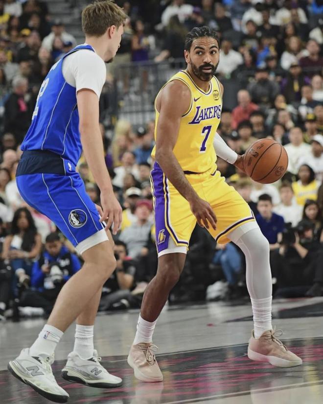 正是那轮系列赛打动了湖人,2023年夏天湖人签下文森特。加盟湖人的第一个赛季(2023-24),文森特因为膝盖伤势,只打了11场常规赛。场均出战19.8分钟,仅得到3.1分0.8篮板1.9助攻,三项命中率:30.6%,10.7%,50%。