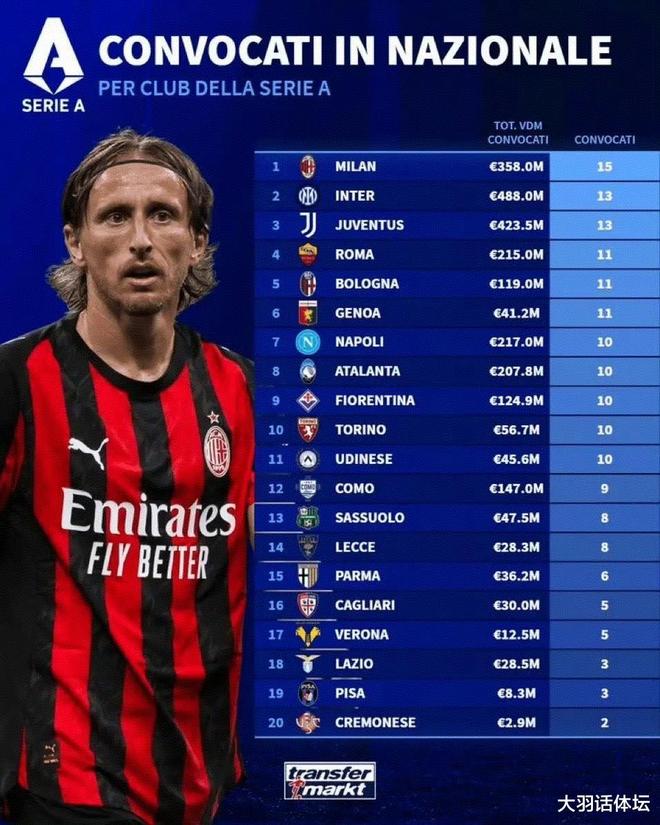 10月份的这次国际比赛日为期2周,AC米兰成为抽调大户,共有15人被各级别国家队征召,排名意甲首位。其中常规主力包括希门尼斯、莱奥、普利西奇、莫德里奇、拉比奥特、萨勒马克尔斯、埃斯图皮尼安、帕夫洛维奇、加比亚、迈尼昂10人。